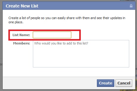 Step 4: Choose a name for your new list and type it in the box. Then click the "Create" button: